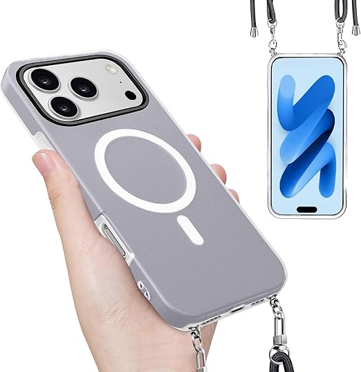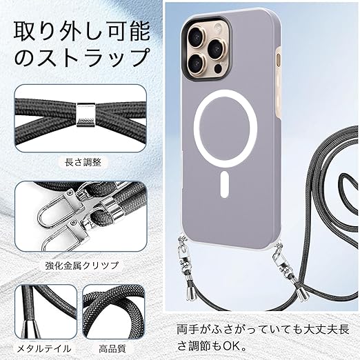 iPhone 17 Pro Max 用 ケース 【MagSafe対応】 バンパー ショルダー ストラップ付き 肩掛け 斜めかけ iPhone 17Pro Max 用 カバー TPU 薄型 韓国 アイフォン17 プロ MAX 用 スマホケース 可愛い 縄掛け (ブラック) a
