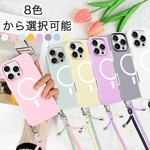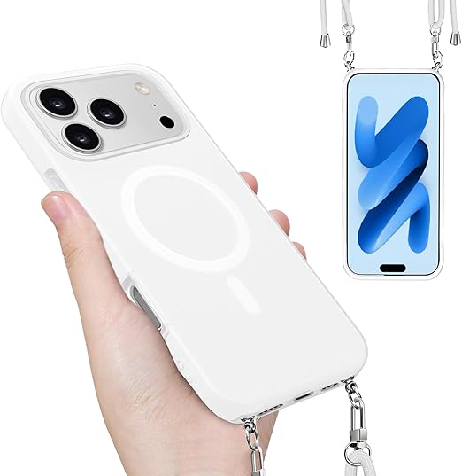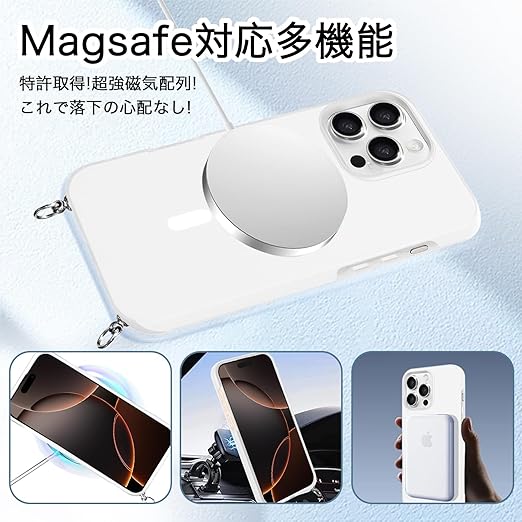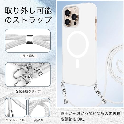 iPhone 17 Pro Max 用 ケース 【MagSafe対応】 バンパー ショルダー ストラップ付き 肩掛け 斜めかけ iPhone 17Pro Max 用 カバー TPU 薄型 韓国 アイフォン17 プロ MAX 用 スマホケース 可愛い 縄掛け (ホワイト) a