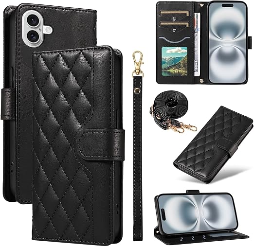 Yuotky for iPhone 17 Air ケース 手帳型 アイフォン17 air ケース ショルダー 対応 iphone17エア スマホケース 肩掛け iPhone 17Air カバー 財布型 いphone 17 air カバー カード収納 横置き機能 耐衝撃 携帯カバー ストラップ付き(ブラック) a