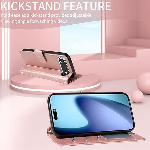 Yuotky for iPhone 17 Air ケース 手帳型 アイフォン17 air ケース ショルダー 対応 iphone17エア スマホケース 肩掛け iPhone 17Air カバー 財布型 いphone 17 air カバー カード収納 横置き機能 耐衝撃 携帯カバー ストラップ付き(ローズゴールド) a