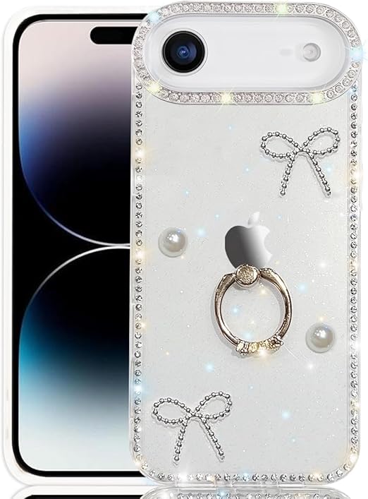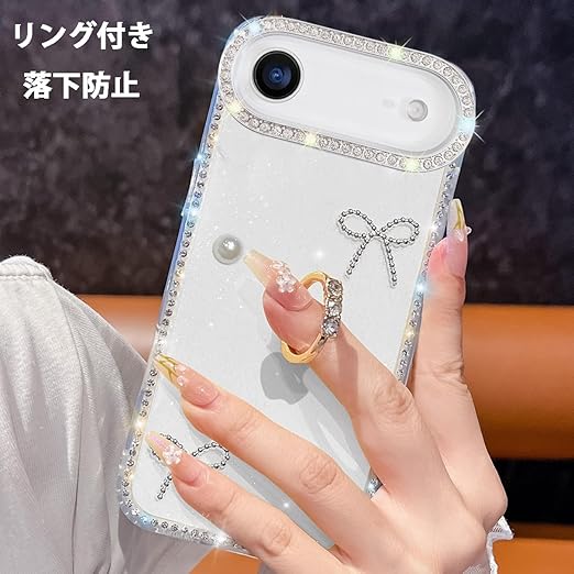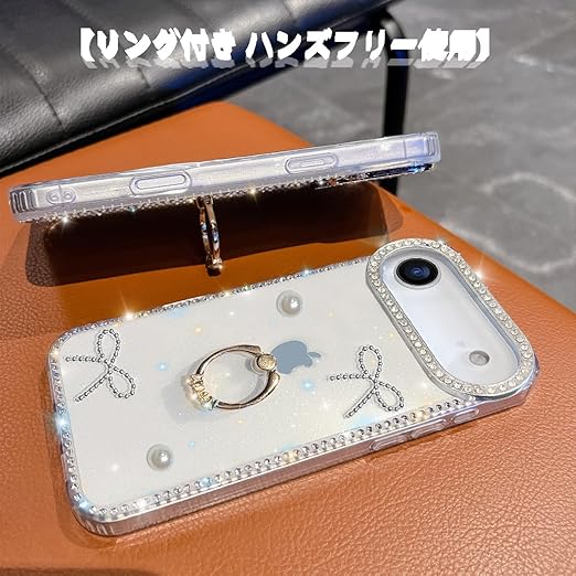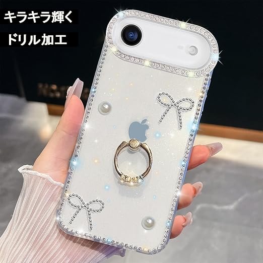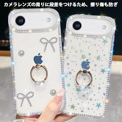 YUYIB iPhone 17 Air 用 クリアケース リング付き ドリル きらきら ブリンブリン かわいい スタンド機能 おしゃれ キャラクター 軽量 薄型 衝撃吸収 女性人気 ストラップ穴あり スマホケース アイフォン17 air 透明カバー (蝶1) a
