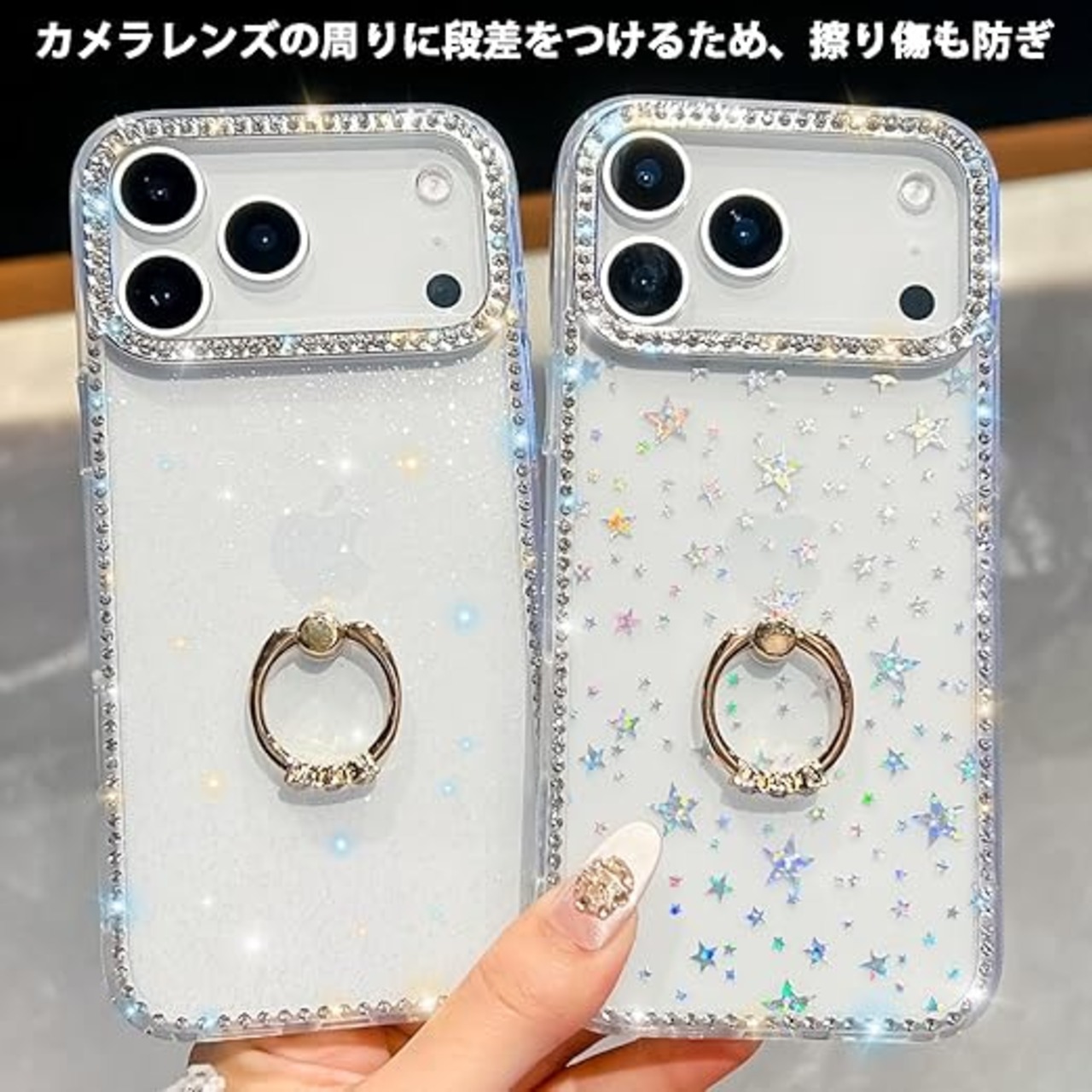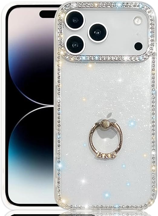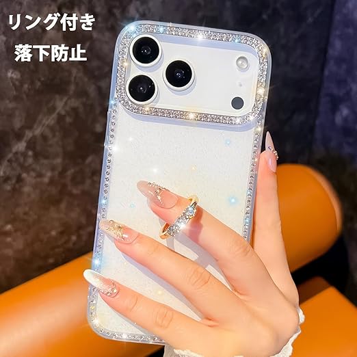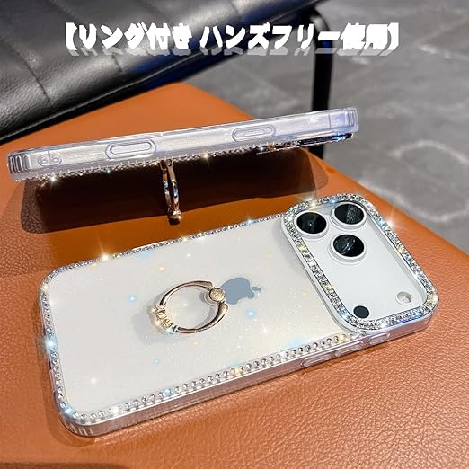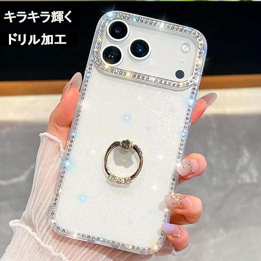YUYIB iPhone 17 Pro 用 クリアケース リング付き ケース ドリル きらきら ブリンブリン かわいい スタンド機能 おしゃれ キャラクター 軽量 薄型 衝撃吸収 女性人気 ストラップ穴あり スマホケース アイホン 17プロ 透明カバー (クリア) a