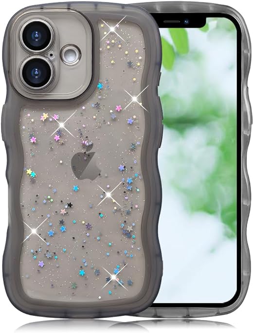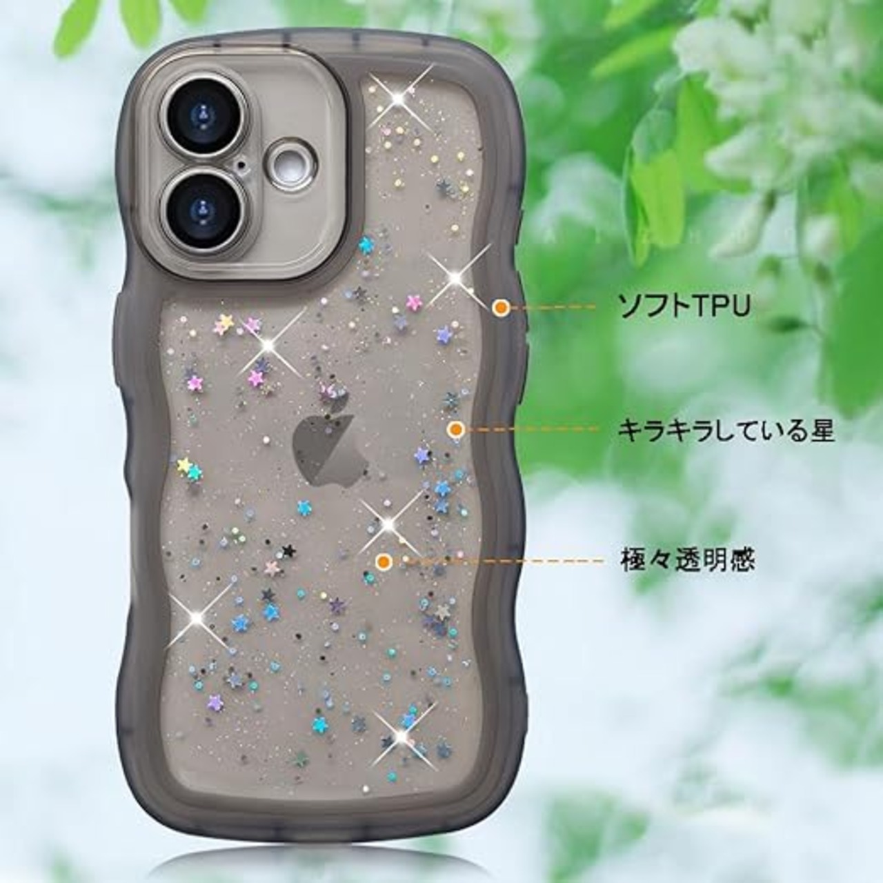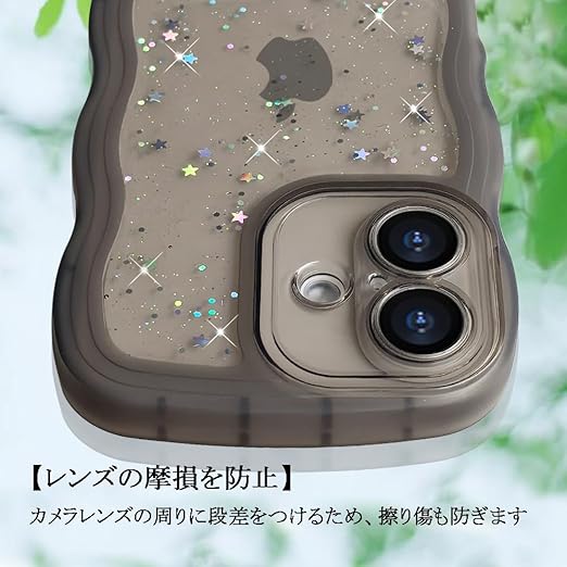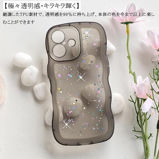 YUYIB スマホケース 対応 iPhone 17 ケース クリア キラキラ かわいい tpuソフトケース 波形 薄型 傷防止背面 滑り止め 指紋防止 ストラップホール付き 衝撃吸収 女性人気 携帯電話ケース アイフォン17 透明カバー (透明黒) a