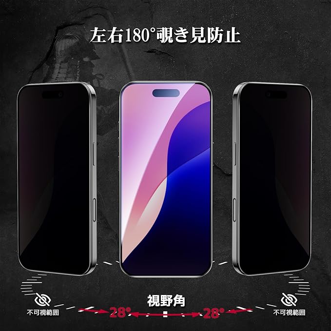 【覗き見防止】:スマホを立てに持った時、画面を横から覗かれることを防ぐ180度ブラインド仕様のプライバシー保護フィルムです。周りの視線を気にすることなくラインやメールのやりとりを行えます。