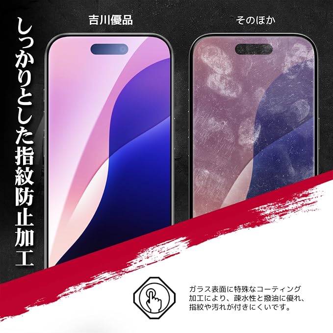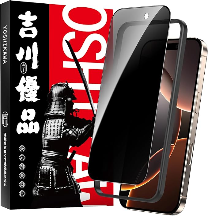 吉川優品 iPhone 17 / 16 Pro用 ガラスフィルム 覗き見防止 全面保護 プライバシー保護 旭硝子製 穴無し 強化ガラス ケースに干渉せず ガイド枠付き 貼り付け簡単 滑らか 気泡無し 貼り付け簡単 6.3インチ 液晶保護フィルム a
