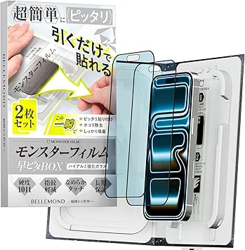 モンスターフィルム iPhone 17 Pro Max 用 さらさら アンチグレア + ブルーライトカット ガラスフィルム | 2枚セット 早ピタ BOX ガイド枠付き 黒縁あり 全面保護 | アイフォン 17 プロマックス 用 保護フィルム B1706 a