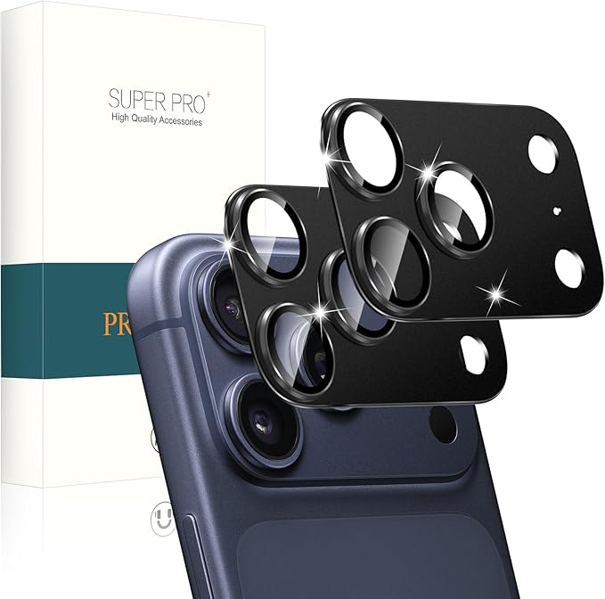 PRODELI For iPhone 17 Pro Max 専用 カメラフィルム アルミ合金製+AR高透過率 一体型 耐衝撃 キズ防止 硬度9H 高透過率 強化ガラス 防爆裂 気泡ゼロ 露出オーバー防止 アイフォン 17 プロマックス 用 レンズ 保護フィルム (ブラック/2枚入り) a