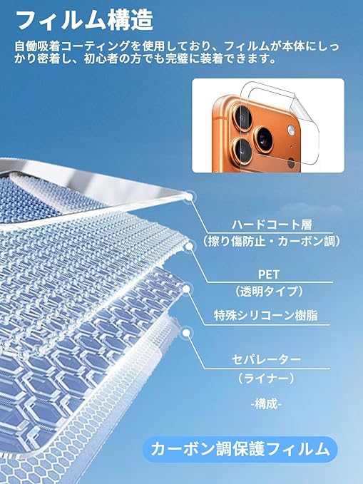 【セット内容】背面カバーフィルム 2 枚、アウトカメラ用保護フィルム、クリーナーキット、貼り付け方法説明書を同梱しています。