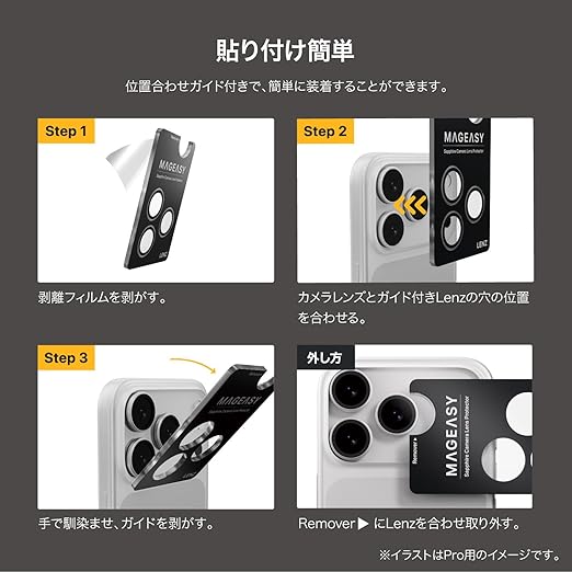 【製品特徴】… ◆ 保護面 : リアカメラレンズ ◆ 再剥離 : 不可 ◆ 指紋軽減 : あり ◆ 装着ガイド : なし ◆ ご注意 : ※本製品とカメラ部分に指紋や汚れ、ホコリが無いか確かめてから貼