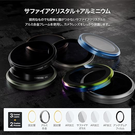 【MagEasy】 iPhone 17 対応 カメラ保護 フィルム 指紋 傷 防止 カメラカバー ガラス レンズカバー [ iPhone17 アイフォン17 対応 ] Lenz スカイブルー a
