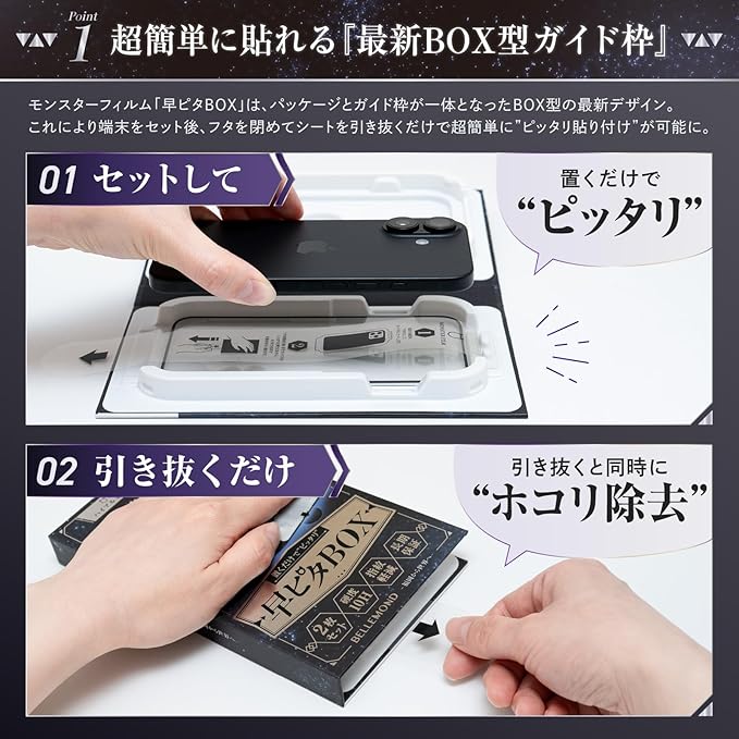 【モンスターフィルム - 早ピタBOX - とは】パッケー