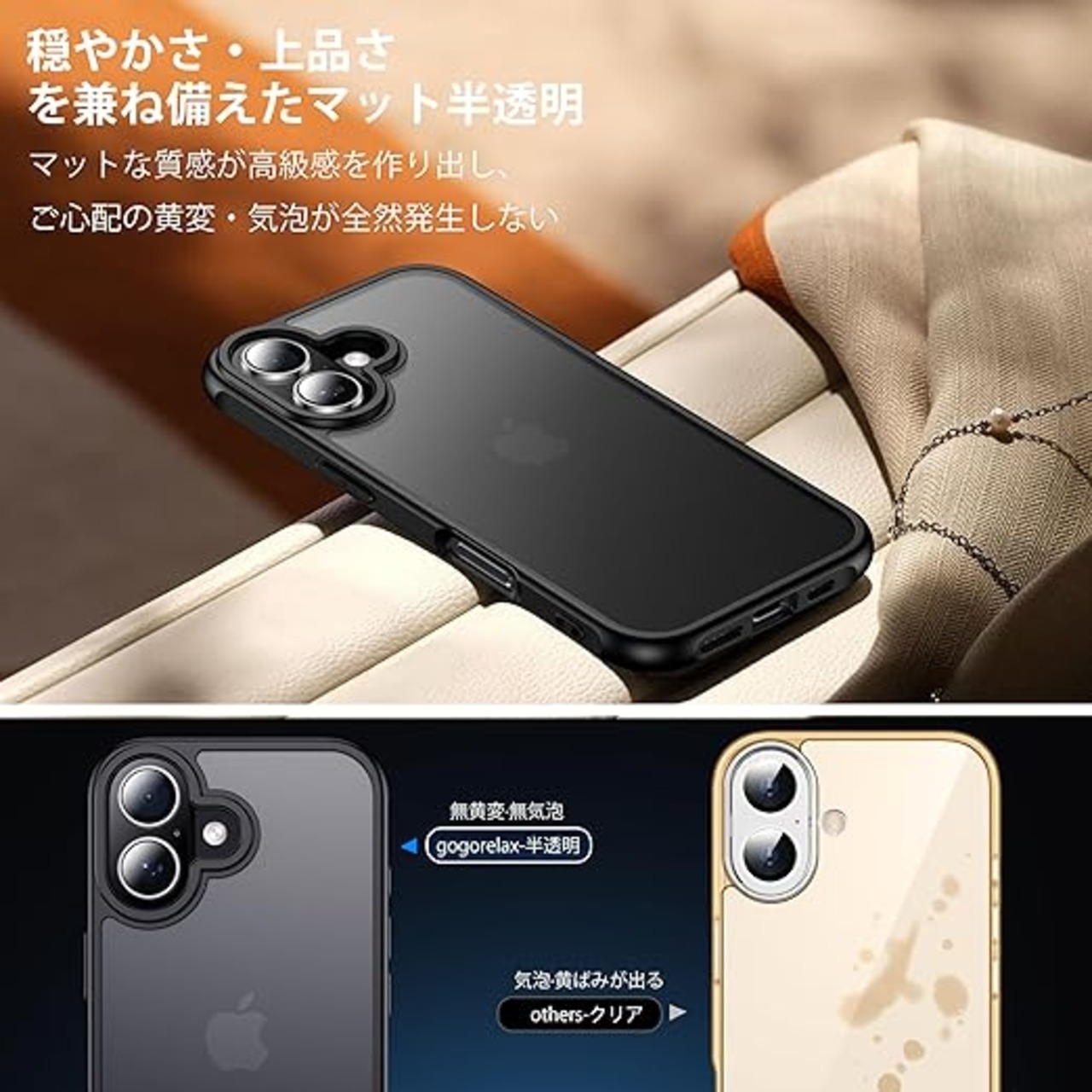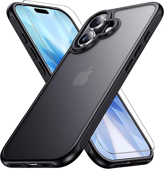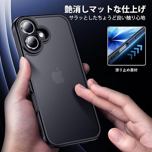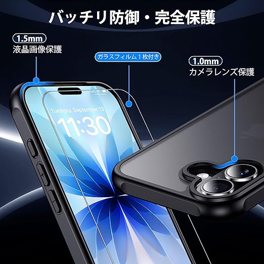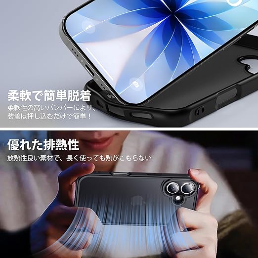 gogorelax for iphone 17 用 ケース 【米軍MIL規格 指紋防止】 ガラスフィルム付き 半透明 アイフォン17ケース 耐衝撃 アイホン17 用 スマホケース マット感 黄ばみなし あいほん17 用 ワイアレス充電対応 あいふぉん17 用 カバー ストラップホール付き マットブラック 6.3インチ a