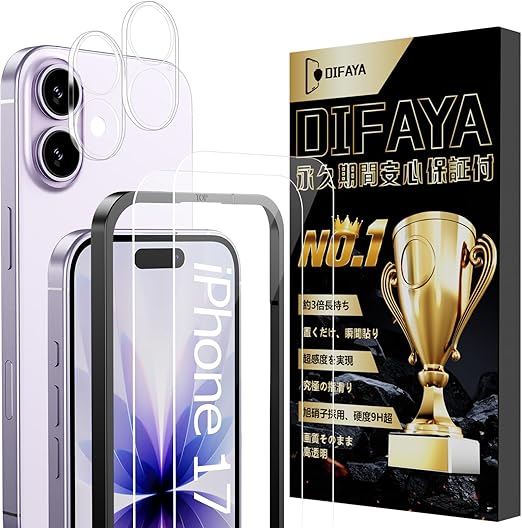【購入前のご注意喚起】:【対応機種】17 ガラスフィルム2枚 + 17カメラフィルム 2枚。全面保護を提供して、別に買うために行く必要はありません。DIFAYAは日本のブランドで、商標登録番号は6737311です。安心して使用できるために、一枚づつ手作業で検品しました。