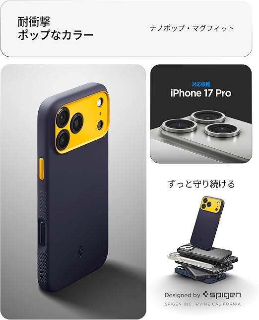 Spigen 【創業18年の技術力】 iPhone 17 Pro MagSafe対応 マグネット搭載 ストラップホール 米軍MIL規格 ナノポップ・マグフィット (ブルーベリー・ネイビー) ACS09966 a