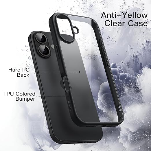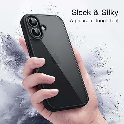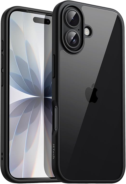 JETech iPhone 17 6.3インチ用 ケース 耐衝撃スマホバンパーカバー ソリッドカラー マットTPUフレーム 傷つけ防止 クリアバック (ブラック) a