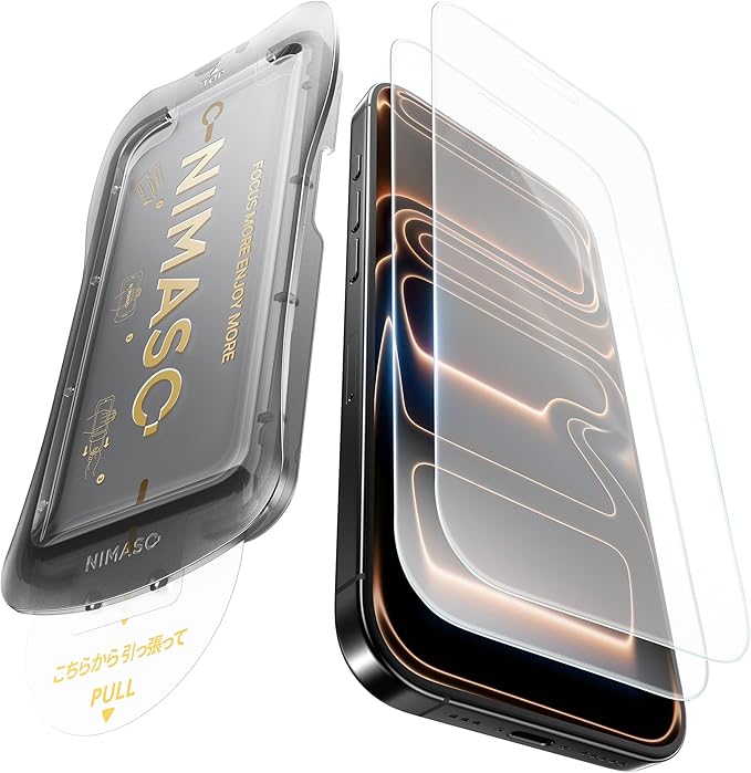 NIMASO アンチグレア iPhone 17 Pro Max用 ガラスフィルム 反射防止 保護フィルム 指紋防止 さらさら 簡単に貼り付け 自動除塵 高感度タッチ 強化ガラス ガイド枠付き 2枚セット いPhone17プロマックス対応(6.9インチ)DSP25F1713 a