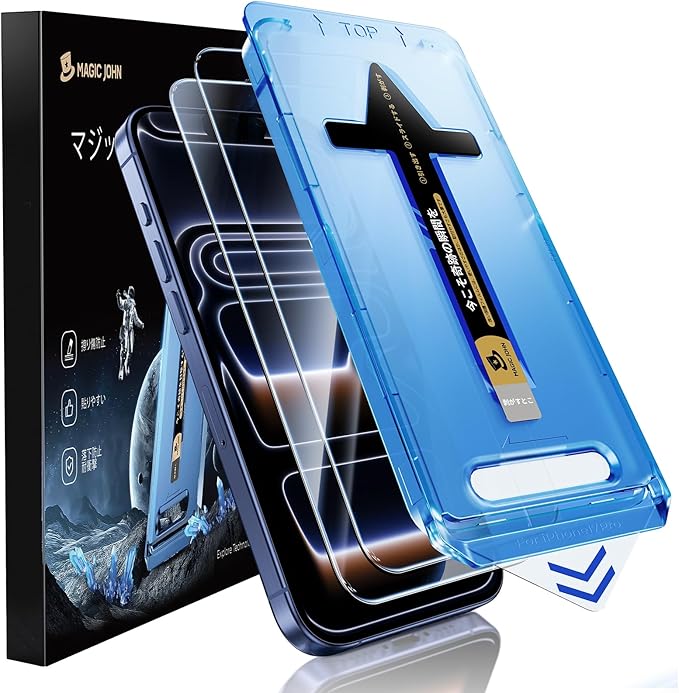 【光沢】MAGIC JOHN 対応 iPhone 17 Pro ガラスフィルム 2枚セット ガイド枠付き 自動吸着 貼りやすい 強化ガラス ズレなく 気泡レス 高透過率 指紋防止 飛散防止 スクラッチ防止 黒縁あり a