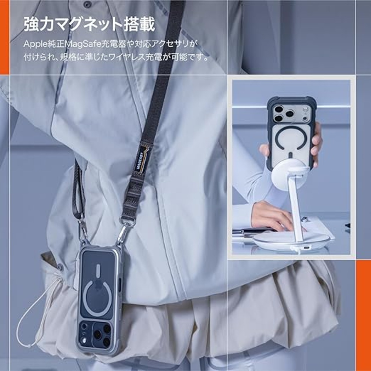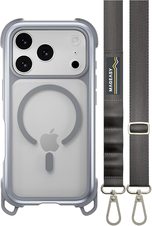 【MagEasy】 iPhone 17 Pro 対応 ケース クリア ショルダー ストラップ MagSafe 対応 耐衝撃 スマホケース マグセーフ 透明 頑丈 ショルダーケース [ iPhone17Pro アイフォン17Pro 対応 携帯ケース ] Odyssey +Strap M C ミスト/コンクリートグレー a