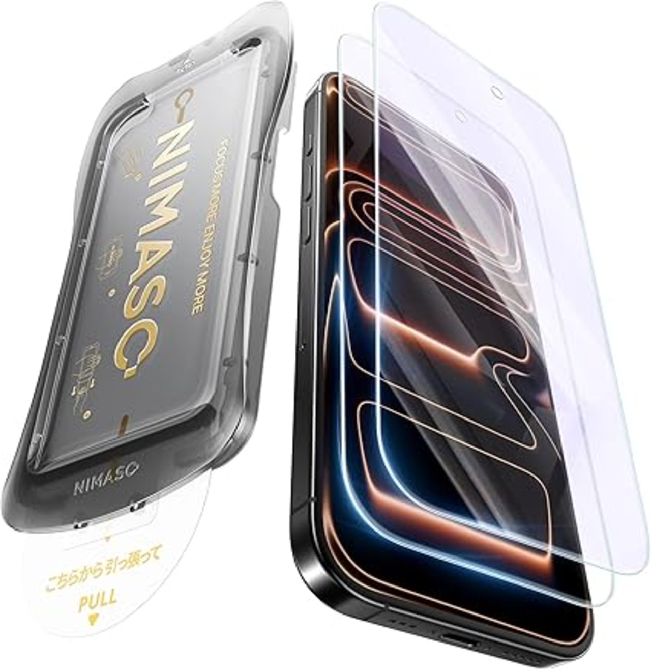 NIMASO ブルーライトカット iPhone 17 Pro Max用 ガラスフィルム 目の疲れ軽減 強化ガラス 保護フィルム 自動除塵 貼付け簡単 指紋防止 ガイド枠付き 2枚セット いPhone 17プロマックス 対応 (6.9インチ)フィルム DSP25F1712 a