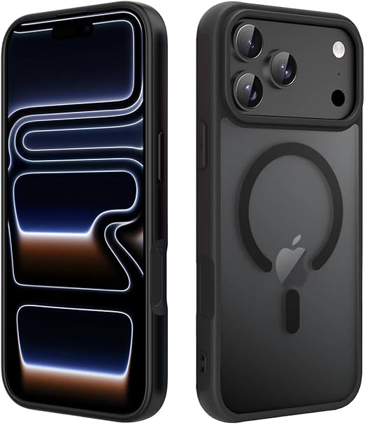 DEVEPLUS iPhone 17 Pro 専用 ケース 【米軍MIL規格・マグネット搭載】 ワイヤレス充電 半透明のマット背面 指紋防止 滑り止め 衝撃吸収 ストラップホール付き 黄変防止 耐久性 iPhone 17 Pro 用 カバー(ブラック) a