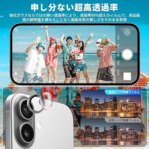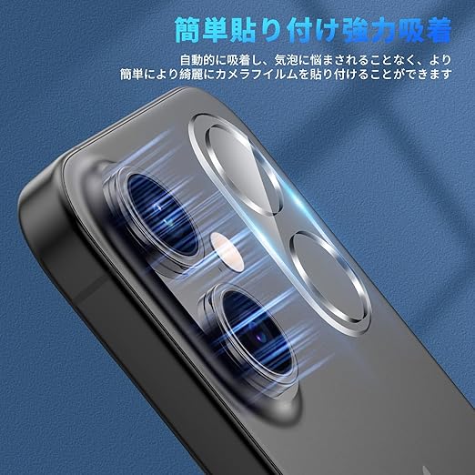 【全面保護・防滴防塵】対応 iPhone 17 レンズフィルムは2眼のレンズ部分だけではなく、四角い台座部分もカバーする一体型のデザインで、レンズに最高な保護力を提供しています。広い面を覆うため、カバーの密着度合いが非常に高くて、レンズのみのカバーと比較して防塵効果も高くて、ホコリが入りにくい構造です。