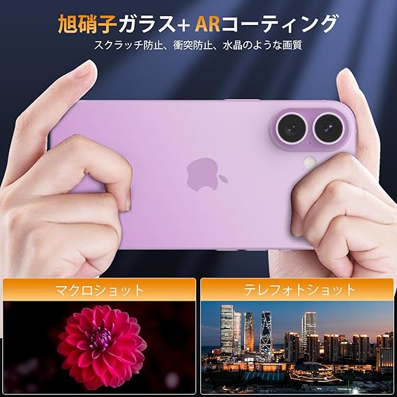 Hohotoon 対応 iPhone 17 用の カメラ保護フィルム 薄 一体型カバー アイフォン17用のカメラカバー & いphone17用のレンズカバー、宇宙航空材料 アルミ合金+9H強化ガラス、耐衝撃 ARコーティング 高透過率 露出オーバー防止、粘着性強い、簡単貼り付け 、スマートフォンカメラガード(薄紫色) a