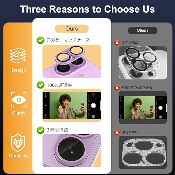 1. ** 【レンズをしっかり守る!アルミ合金一体型全面防御】**:スマホを落とした時、「あっ!」ヒヤッとした経験ありませんか?カメラが割れて、高額なレンズ修理代に悩んでいませんか?当社のいphone 17 用のカメラカバーは最高硬度9hのアルミ合金と強化ガラスを採用しています。アップグレードされた一体化構造設計により、カメラフィルムは従来の製品と比べて保護性が高くなって、キズやひび割れを避けて、衝撃からカメラレンズをしっかりと守ってくれます。