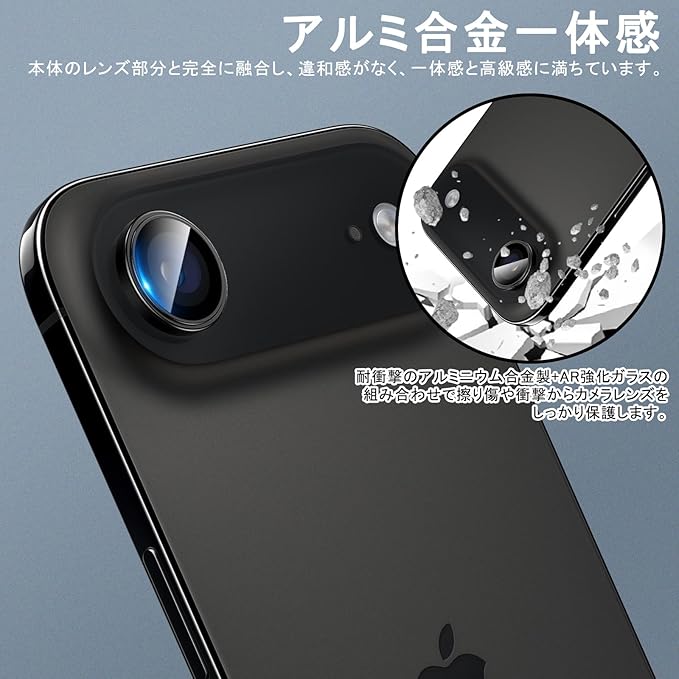【アルミ合金一体感】本体のレンズ部分と完全に融合し、違和感がなく、一体感と高級感に満ちています。耐衝撃のアルミニウム合金製+AR強化ガラスの組み合わせで擦り傷や衝撃からiphone 17 airカメラレンズをしっかり保護します。