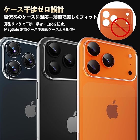 対応iPhone 17 Pro専用・一体型設計 - 個別ではなく一体型のカバーで、全カメラレンズをまとめてしっかり保護。専用設計により、フィット感抜群で純正ケースとも相性。