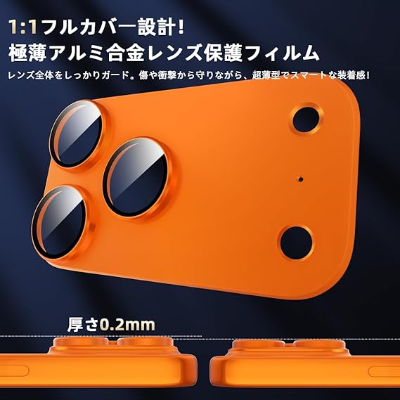 CANLER for iPhone 17 Pro カメラフィルム レンズカバー 強化ガラス レンズ全面保護フィルム アイフォン17プロ 用 アルミ合金フレーム付き 耐衝撃 傷防止 高透過率 簡単貼り付け ケース干渉なし レンズプロテクター (橙色, iPhone17 Pro) a