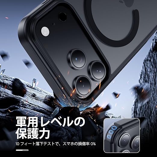 【米軍規格・MagSafe対応】Gtsoho iPhone 17 Pro Max 用 ケース 半透明 マグネット搭載 ワイヤレス充電 耐衝撃 耐久性 全面保護 黄ばみなし ストラップホール付き イフォン 用 カバー マグセーフ対応 ブラック a