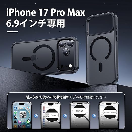 強力な磁力吸着!】iPhone 17 Pro Max 用(6.9インチ)。 iPhone 17 Pro Max ケース内部は38個強力なN52マグネットを搭載、超吸着能力でいくら振っても落ちない。また、マグセーフ世代に増える、Magsafe対応スタンド&リングなど大活躍で、リラックスした生活に重宝します。