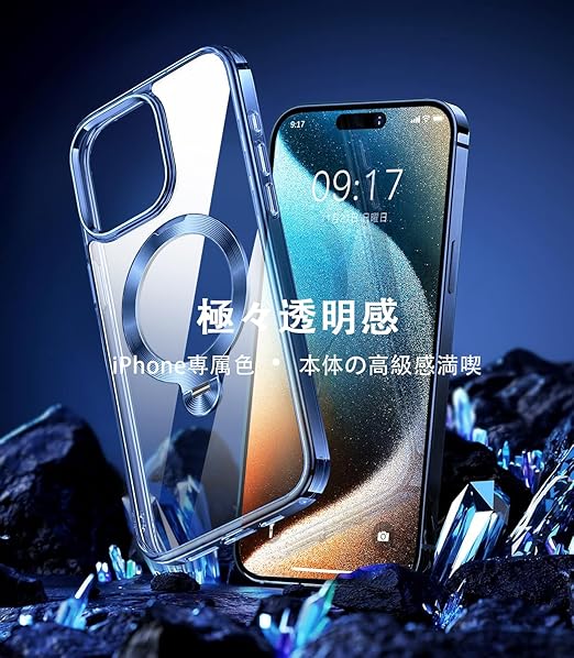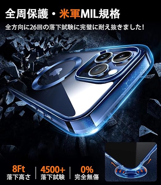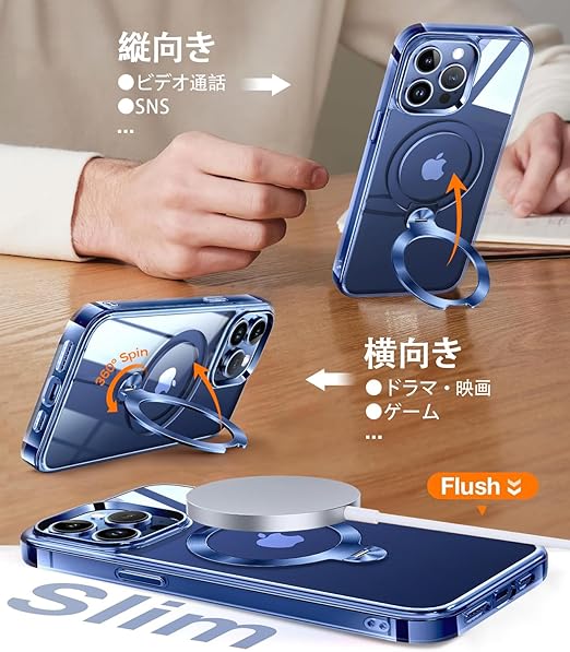 【唯一無二・360°回転CD スタンド】ZapNet iPhone 17 Pro 用 クリア ケース Magsafe 対応 [定点スタンド・超絶安定性][本体を再現・極透明]ストラップホール付き マグセーフ ワイヤレス充電対応 黄変防止 米軍MIL規格取得・耐衝撃 アイホン17プロケース マホケース17 Pro 人気 6.3インチ(ブルー) a