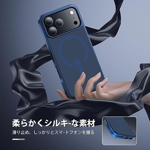 【米軍規格・MagSafe対応】Gtsoho iPhone 17 Pro Max 用 ケース 半透明 マグネット搭載 ワイヤレス充電 耐衝撃 耐久性 全面保護 黄ばみなし ストラップホール付き イフォン 用 カバー マグセーフ対応 ネイビー a