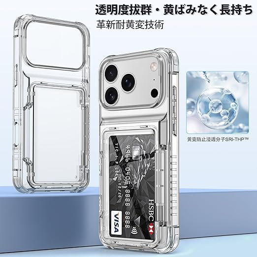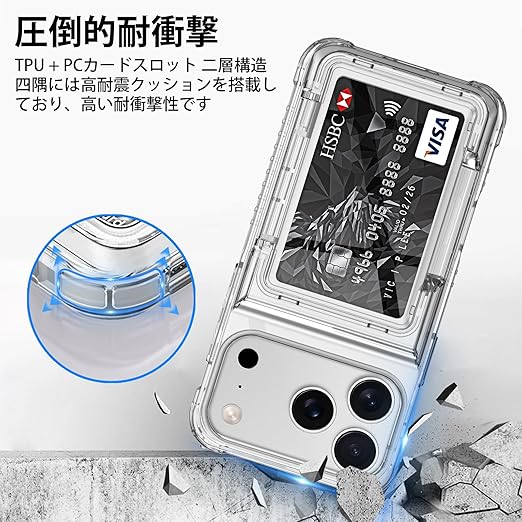 COOLDEN いphone17ProMax ケース カード 収納 背面 クリア 対応 iPhone 17 Pro Max ケース 手帳型 カード入れ 米軍MIL規格 耐衝撃最強 カバー 落下防止 対応 iPhone17プロマックス あいふおん17ケースプロマックス 【3-4枚】 a