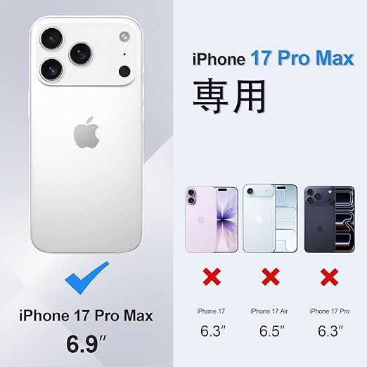 【対応機種】iPhone 17 Pro Max 用 6.9インチ 専用のケースです。ご購入の前に必ず機種を確認してください。