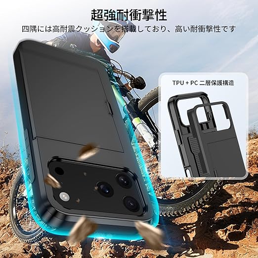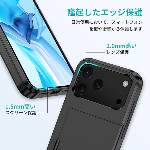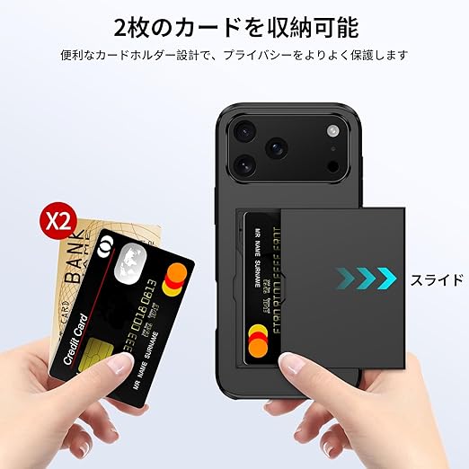 【全密閉式隠しカードホルダー設計】いPhone17Pro 用ケースは2枚のカードを安全に保管することができる。財布を持ち出す必要がなく、身分証明書、クレジットカード、現金を簡単に持ち運ぶことができます。全閉鎖設計はカードの安全を確