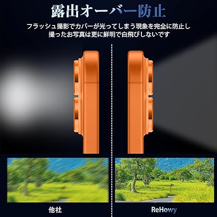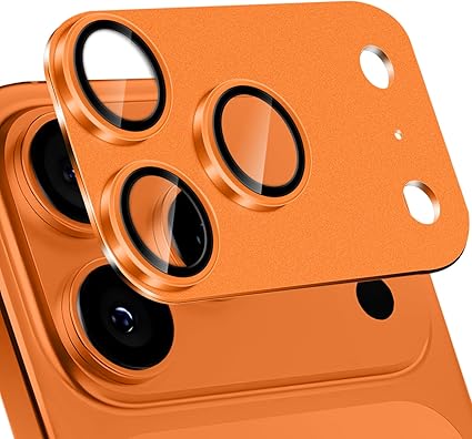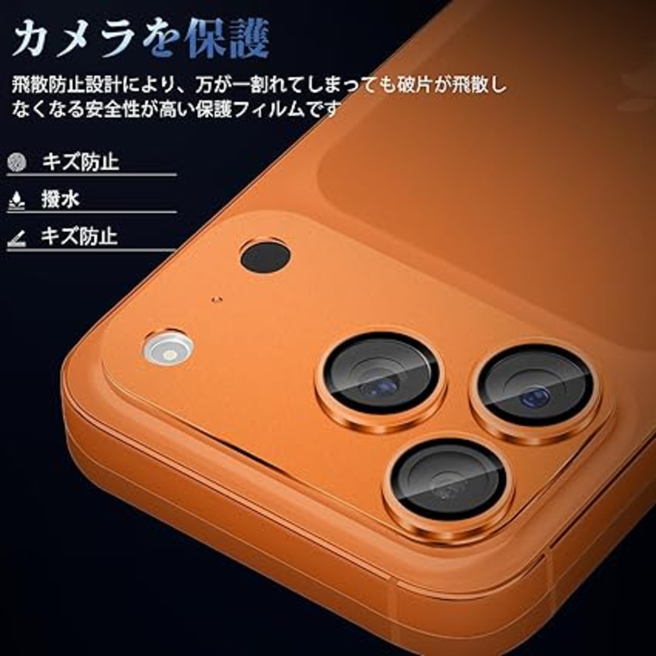 ReHowy カメラフィルム iPhone 17 Pro Max 対応 カメラレンズカバー アルミ合金+9H硬度強化ガラス製 アイフォン 17 pro max レンズカバー 露出オーバー防止 キズ防止 耐衝撃 全面保護 カメラカバー 高透過率 防塵 金属 ケース iPhone 17 pro max 用 レンズフィルム オレンジ a