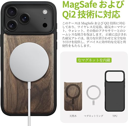 Carveit iPhone 17 Pro ケース 木製【天然木+TPUシリコンツーインワン】いPhone 17 Pro ケース MagSafe 対応 耐衝撃 滑り止め 磁気内蔵 アイフォン17 プロ カバー (ウォールナット-白木スタイル) a