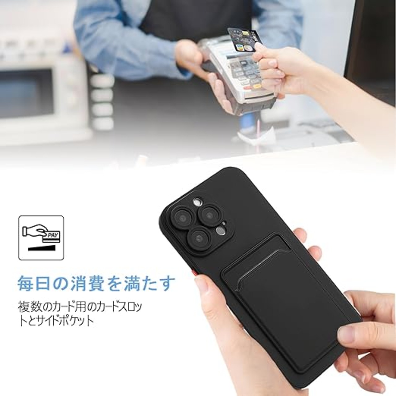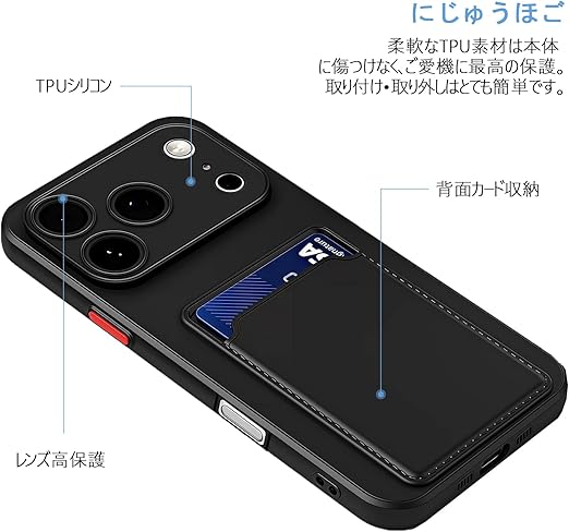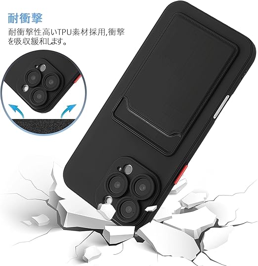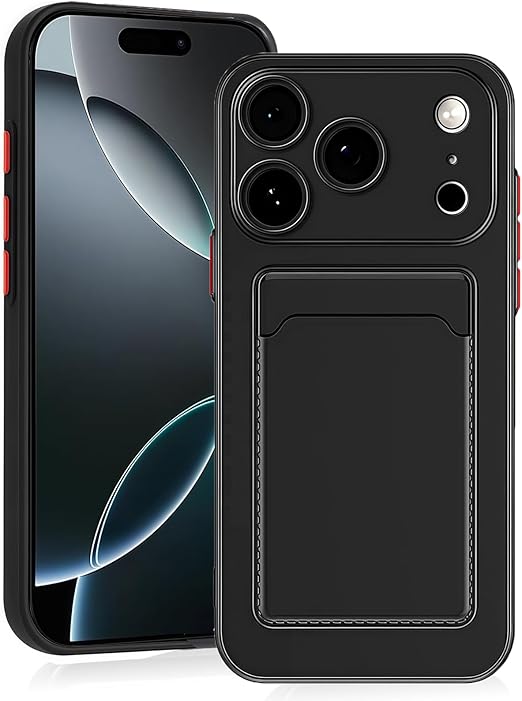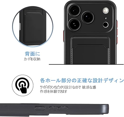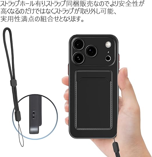 【 Agaiy 】iPhone 17 PRO 対応 ケース 背面カード収納 耐衝撃 薄型 軽量(ブラック)アイフォン17プロ TPUスマホケース 全面保護 超耐磨 マット質感 ストラップホール付き 携帯便利 iPhone 17 PROケース 黒 a