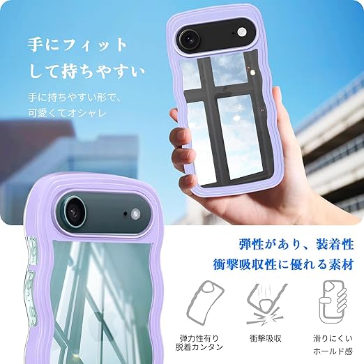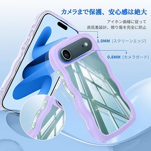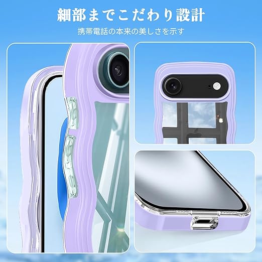 iPhone Air 用 ケース 波型 クリア 透明 背面ケース スマホケース 可愛い アイフォン Air 用 カバー 耐衝撃 滑り止め ストラップホール付き 紫 ウェーブ おしゃれ デザイン 全面保護 iPhone 17 air 対応 カバー 持ちやすい 6.6インチ 韓国 人気 パープル a