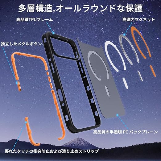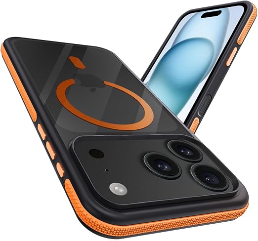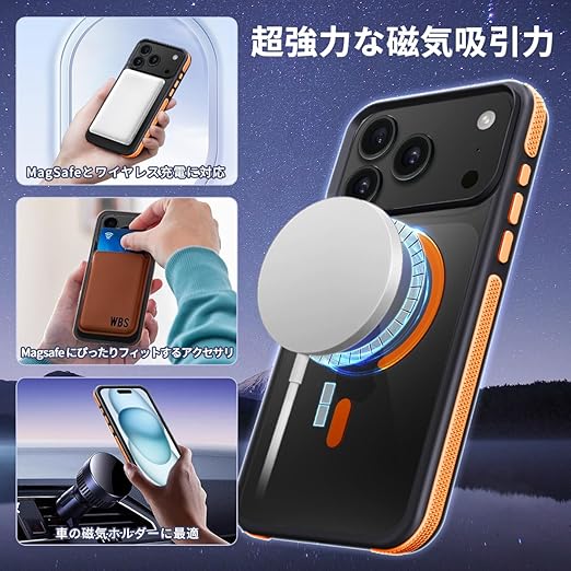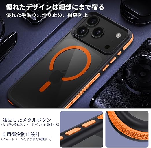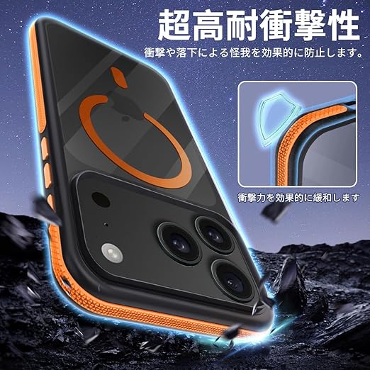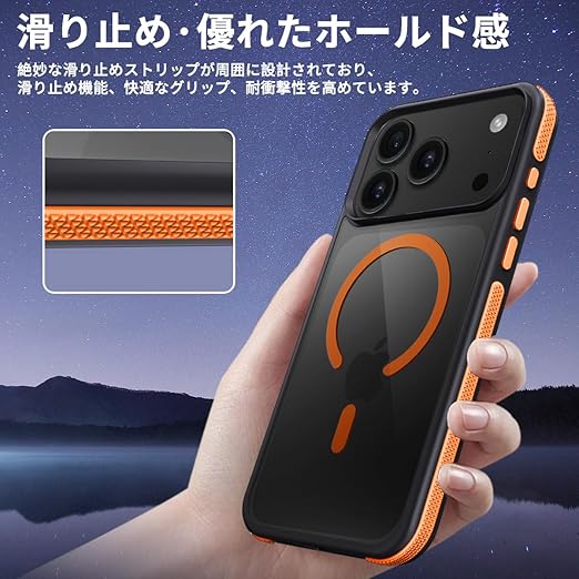 coiwantung 対応 iPhone 17 Pro MagSafe ケース 耐衝撃 滑り止め アイフォン 17 Pro スマホケース 【新しい衝突防止ストリップ設計】[フォーインワン構造設計]米軍MIL規格 カバー 軽量 ワイヤレス充電対応 半透明 滑り止めエッジ 薄型 落下保護 (オレンジ) a