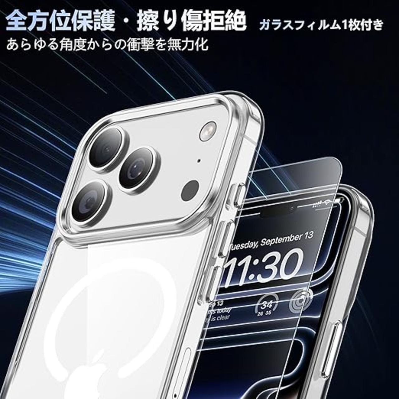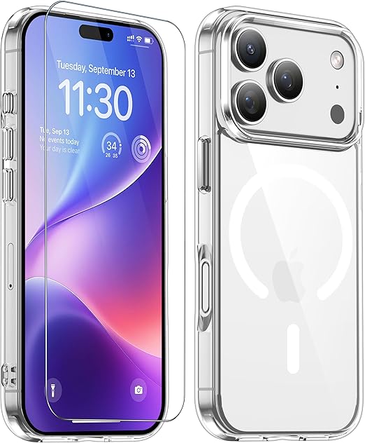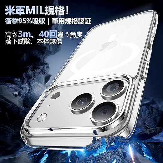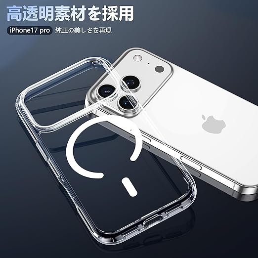JUSTCOOL for iPhone 17 Pro 用 ケース クリア Magsafe対応 ガラスフィルム付き アイフォン17Pro 用 ケース マグネット搭載 米軍MIL規格 耐衝撃 ストラップホール付き 耐久性 黄変防止 いphone17 pro 用 ワイヤレス充電対応 あいほん17Pro 用 SGS認証 PC背面 スマホケース アイフォン17プロ 用 カバー 透明 6.3インチ a