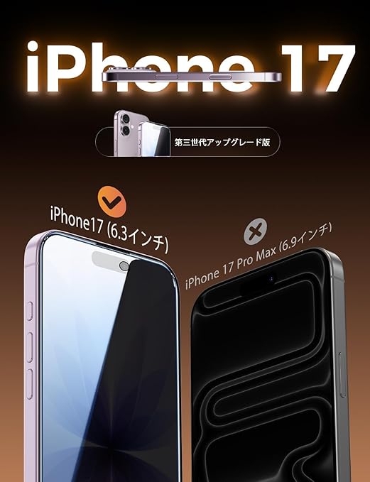 【もう失敗はしない】本製品は iPhone 17 (6.3 インチ)に対応するガラスフィルム2枚セットです。百万以上の欧米ユーザーのフィードバックを集めて日々改善したマジックガイド枠は技術の革新だけではなく、匠の精神を求める結晶です。操作が簡単でずれにくく、一歩だけで保護フィルムを貼り付けます。そのうえ、自動ホコリ取りデザインだけでなく、マジックガイド枠のスロープデザインで、空気を効率的に取り除くことができ、初心者でも気泡レスのまま綺麗に貼れます。