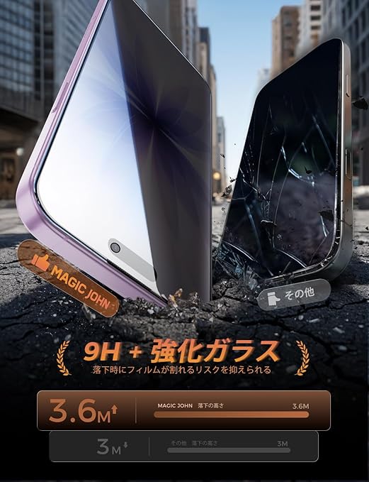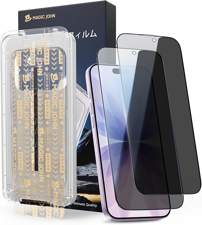 【覗き見防止】MAGIC JOHN 対応 iPhone 17 ガラスフィルム 2枚セット マジックガイド枠付き 自動吸着 貼り付け簡単 ズレなく 気泡レス 指紋防止 飛散防止 耐衝撃 9H硬度 強化ガラス 保護フィルム a