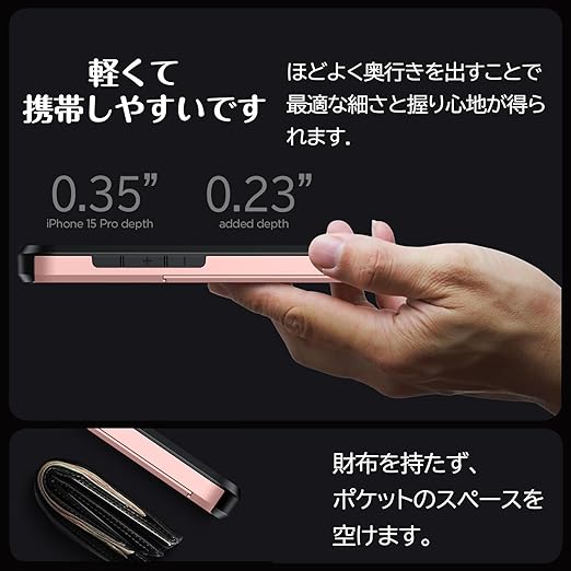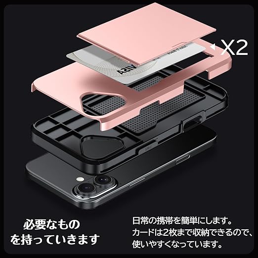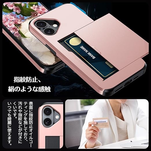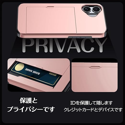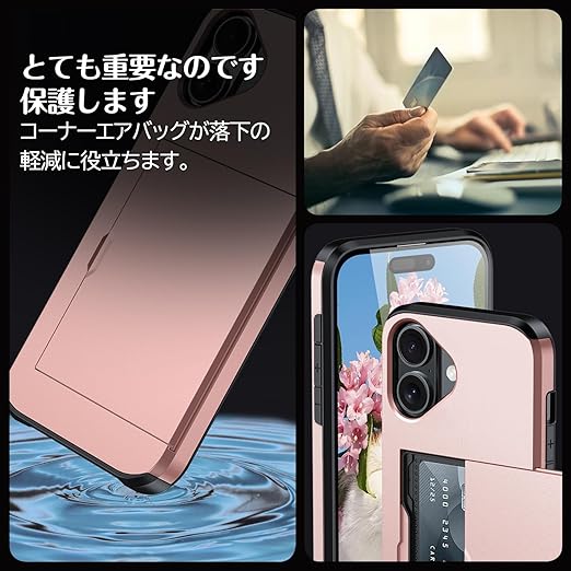 iPhone 17 用 ケース カード収納 背面 米軍MIL規格 耐衝撃最強 アイフォン17 ケース ICカード収納 落下防止 全面保護 指紋防止 滑り止め 擦り傷防止 ローズゴールド a