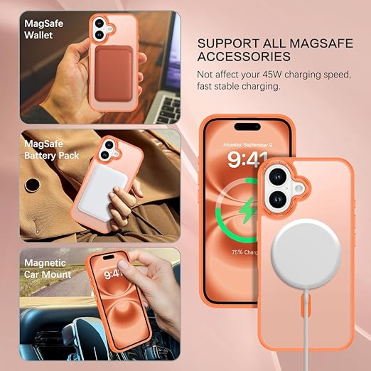 【Magsafeマグセーフ対応・ワイヤレス充電対応】厚さ1.0mmのN52磁石38個内蔵でMagSafeアクセサリに強力磁力固定します。ケース付けたままワイヤレス充電完全対応します。