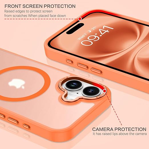 YINLAI iPhone 17 6.3インチ 専用 ケース カバー スマホケース オレンジ|耐衝撃・米軍MIL規格・落下防止・画面 カメラ保護|Magsafe・マグセーフ対応・マグネット・ワイヤレス充電|超強磁力・指紋防止・黄ばみ防止・滑り止め|軽量・薄型・マット仕上げ|便利・耐久性・長持ち a