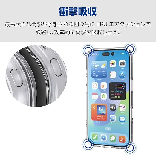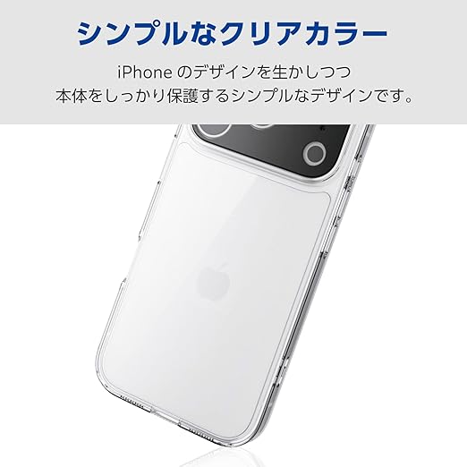 エレコム iPhone 17 Pro ケース カバー クリア 耐衝撃 衝撃吸収 極限設計 ハイブリッド ポリカーボネート ストラップホール付き 4つ角エアークッション カメラレンズカバー保護 メタルステッカー付属 クリア PM-A25CHVCKKPCR a