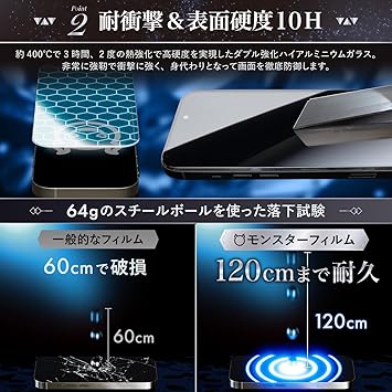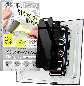 モンスターフィルム iPhone 17 Pro Max 用 覗き見防止 ガラスフィルム | 2枚セット 早ピタ BOX ガイド枠付き 黒縁あり 全面保護 | のぞき見防止 アイフォン 17 プロマックス 用 保護フィルム B1707 a